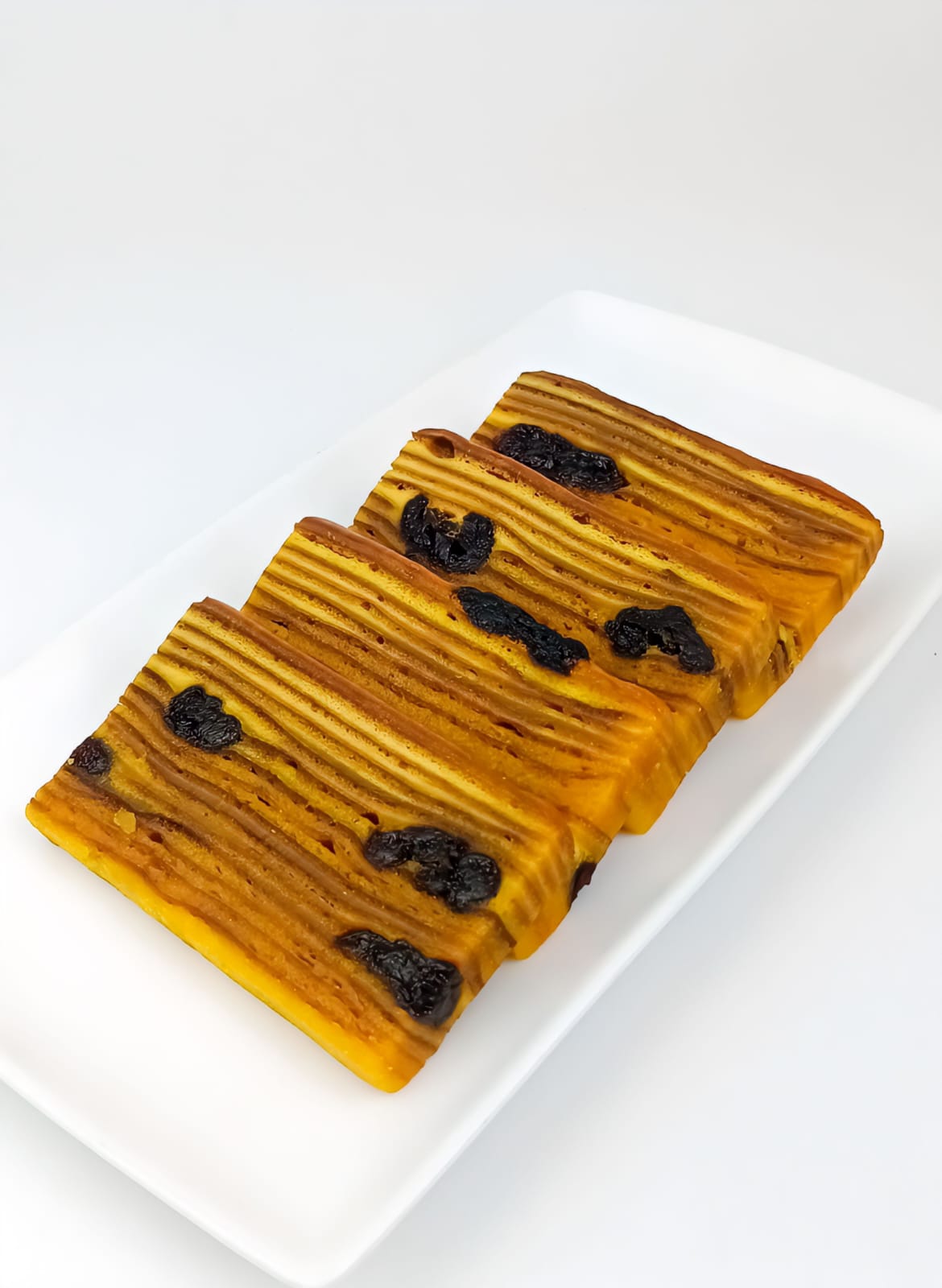 Traditional sweet and buttery layer cake with sliced of plum on each layers.