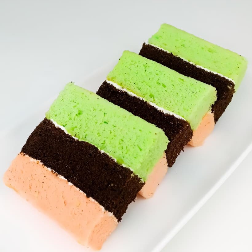A delicious rainbow soft layer cake with whipped cream on each layers.