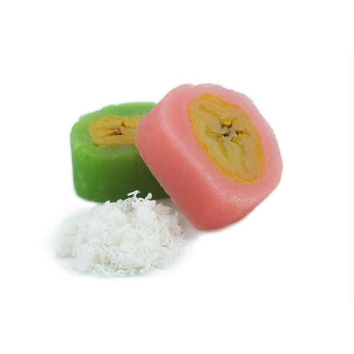 Mata Roda is one of Indonesian traditional foods. It's made from mashed cassava with sweet banana filling and served with grated coconut.