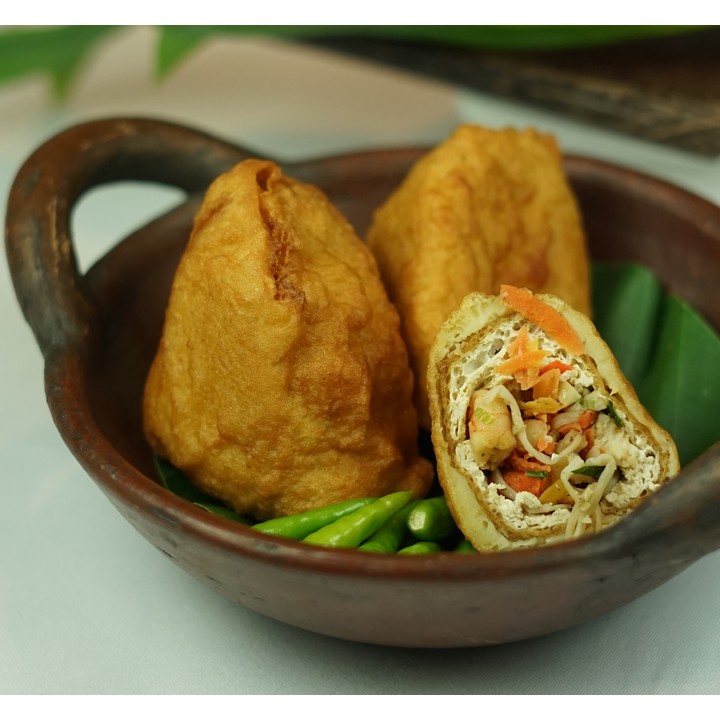 Fried tofu with vegetable, meatball and shrimp filling, wrapped with tasty crispy skin.